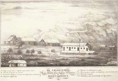 (Trata-se mais uma vez da «Quinta dos Cavalleiros» (imagem acima), um dos símbolos da fixação do primeiro grupo de portugueses que, idos do Brasil, fugidos aos lastimosos acontecimentos de Pernambuco ocorridos a 26 e 27 de Junho de 1848, chegaram a Mossãmedes no dia 04 de Agosto de 1849, para alí, em solo que consideravam Luso, se fixarem e desenvolverem as suas propriedades agrícolas nas margens férteis dos rios Bero e Giraúl ).