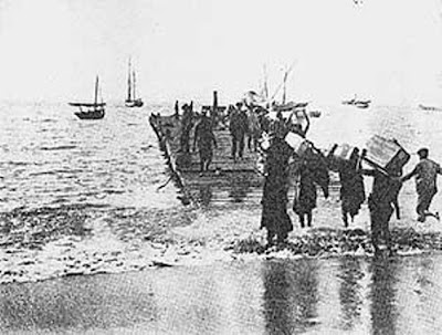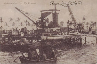 Colonos desembarcando em Mossâmedes(?), ou outra qualquer ponte na região...  Da capa do livro Slaves, Peasants and Capitalists in Southern Angola 1840-1926 (African Studies)